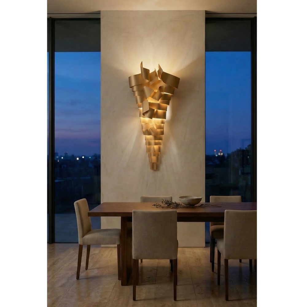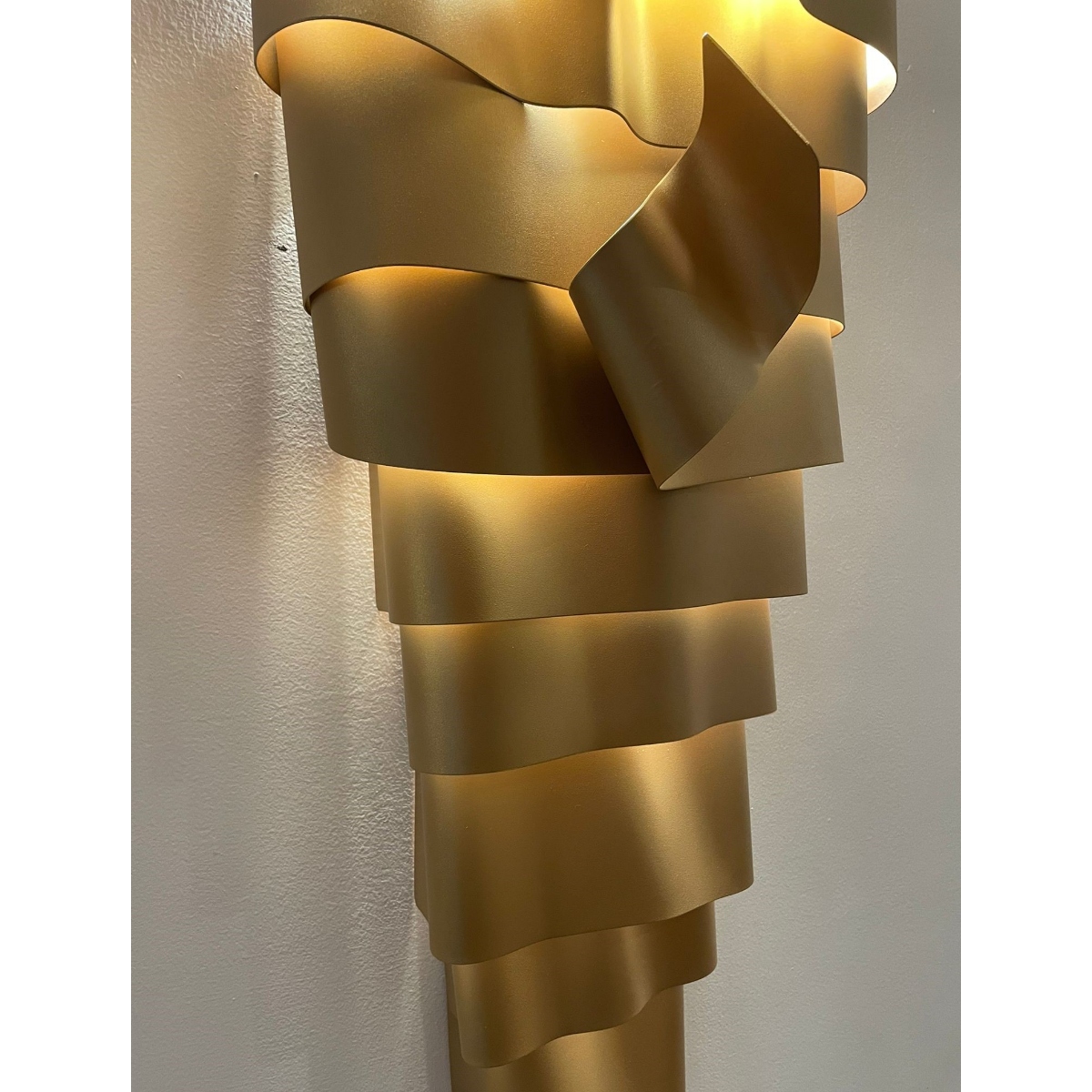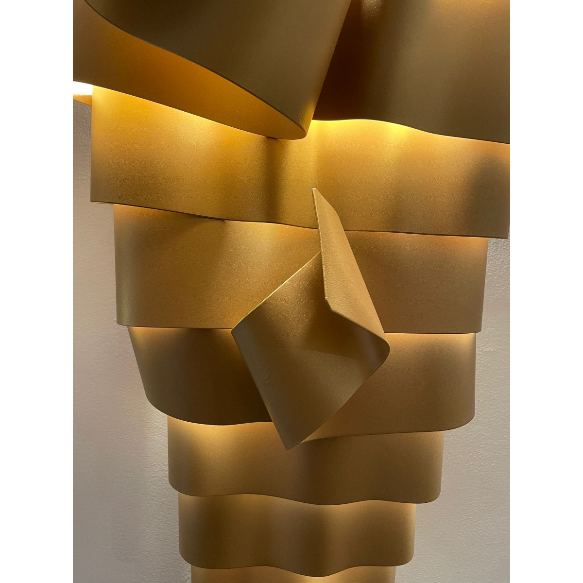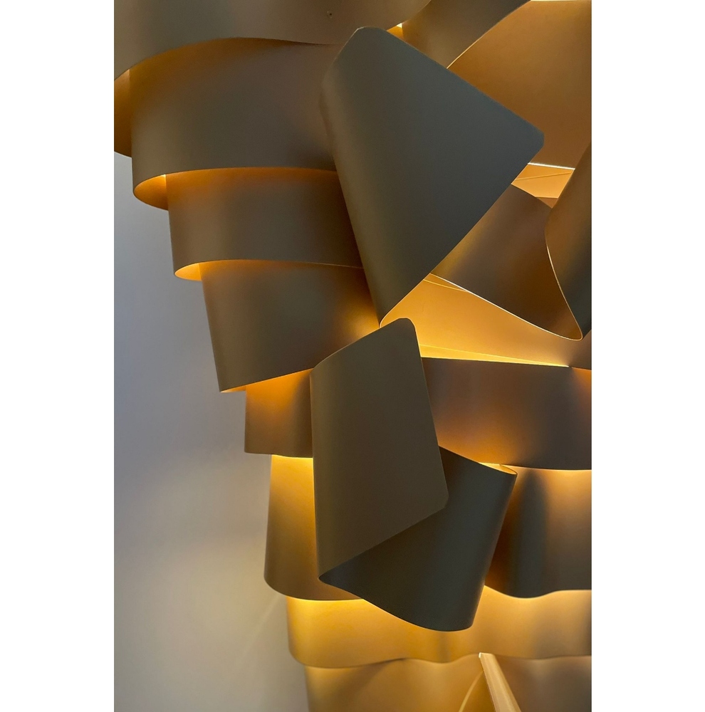 La scultura luminosa RAMPICANTE BIG ORO è un prodotto interamente Made in Italy, completamente in ALLUMINIO (struttura e lamiere decorative) che è noto per essere un materiale riciclabile al 100%. La scultura è stata colorata professionalmente con vernici atossiche a polvere, con finitura oro semilucido brillante, leggermente ruvido.