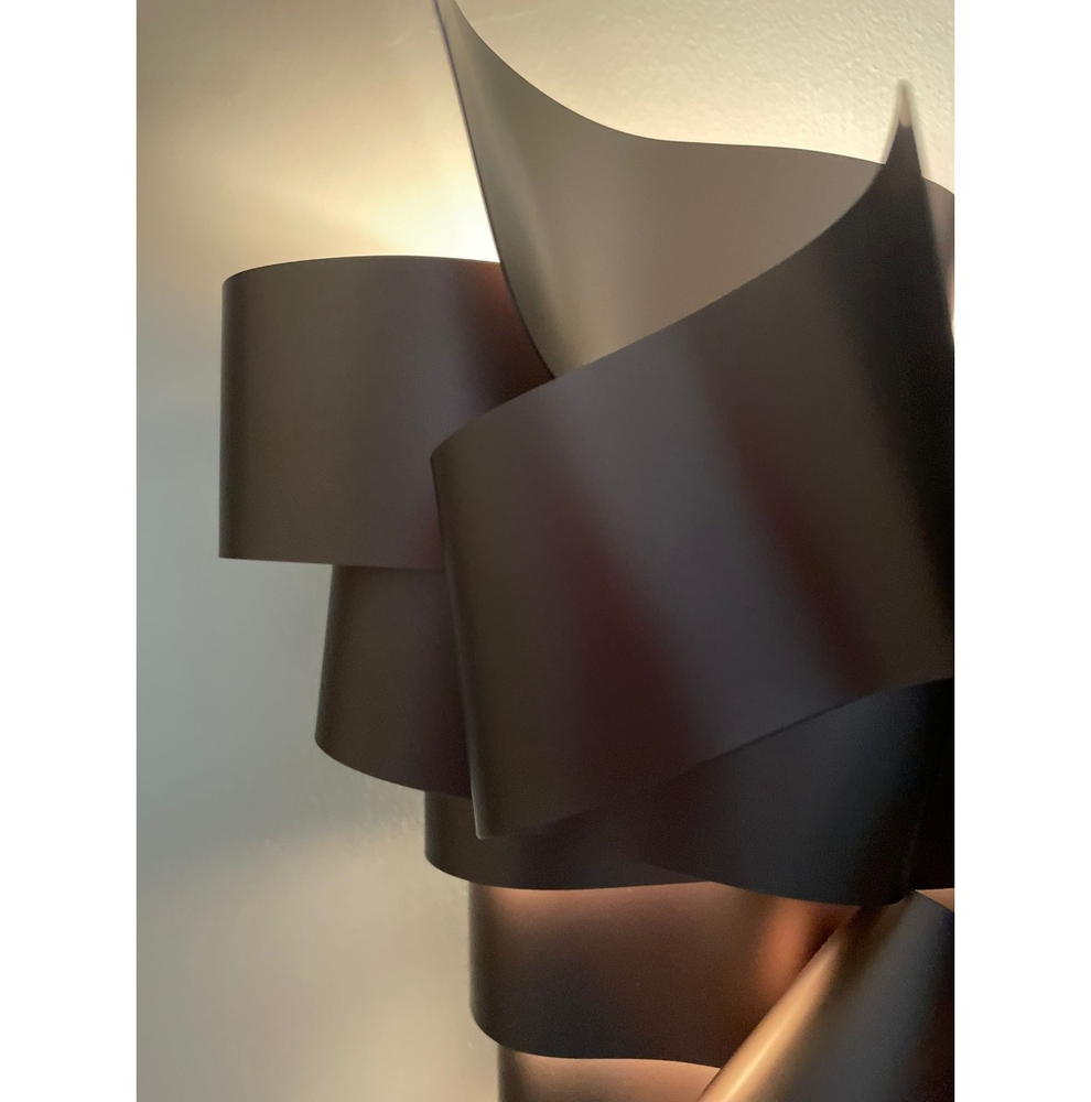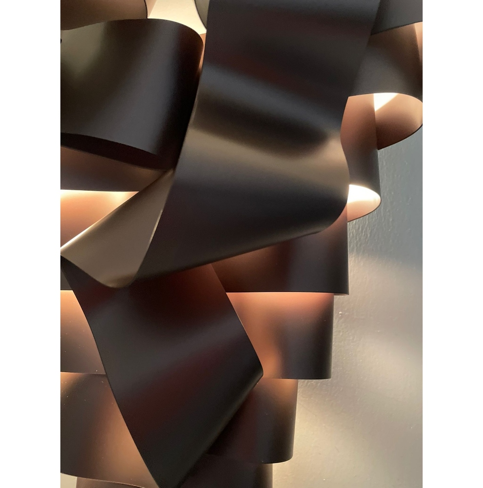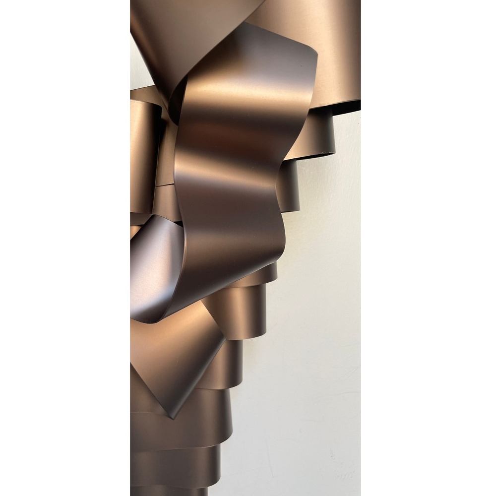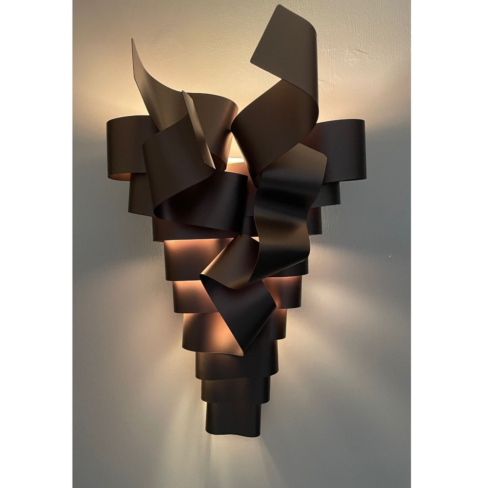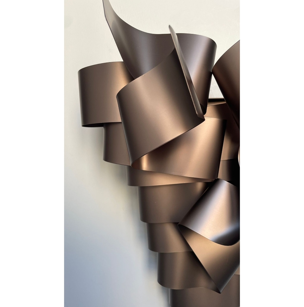 La scultura luminosa RAMPICANTE SMALL BROWN è un prodotto interamente Made in Italy, completamente in ALLUMINIO (struttura e lamiere decorative) che è noto per essere un materiale riciclabile al 100%. La scultura è stata anodizzata professionalmente, con finitura marrone metallizzato.